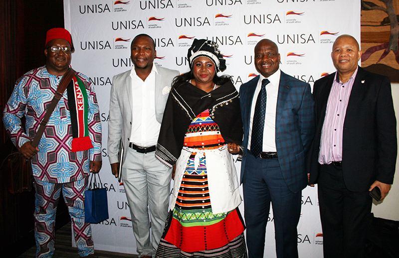 Dr Tonny Kambi Masha (University of Fort Hare), Mondli Nhlangulela (Unisa Convocation), Adv. Boniswa Agrinett Mzimba (Convenor: East London Chapter ), Frankie Mojapelo (Deputy Director: DIA), and Motale J Nkgoang (Regional Director: Eastern Cape)