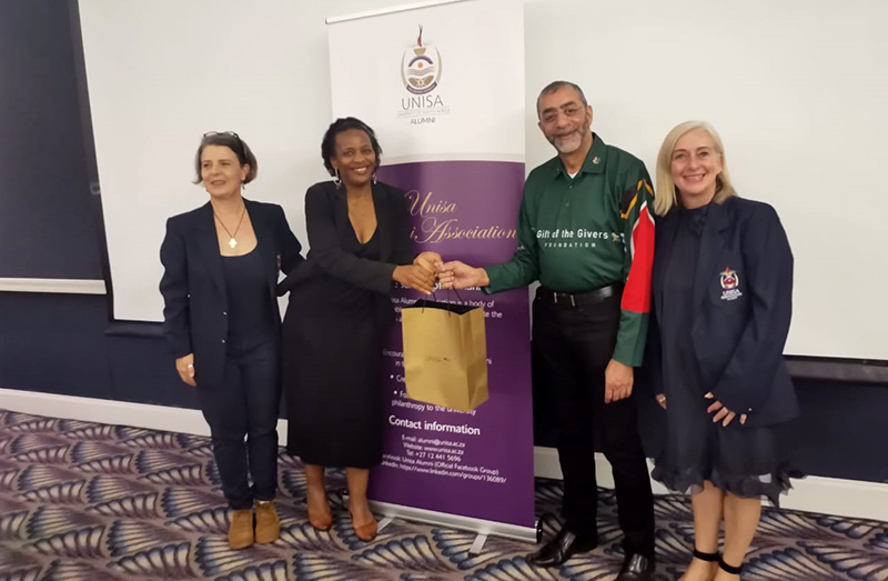 Cilla Boucher (Unisa Alumni Relations Officer), Dr Joyce Myeza (Unisa Regional Director: KwaZulu-Natal Region), Dr Imtiaz Sooliman (Founder of Gift of the Givers) and Lynette van Niekerk (Unisa Foundation and Alumni Relations Events Coordinator)
