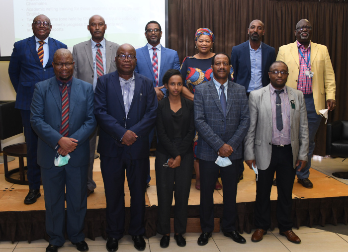 Front row (from left to right): Prof O. Kole (Acting ED:CLAW), Prof P. Ngulube (Acting ED:CGS), Ms M. Hadish (Second Secretary & Head of Public Diplomacy Ethiopia Embassy), Mr M. Tefera (Deputy Director Unisa Learning Centre in Ethiopia), Dr M. Hlongoane (Acting ED:CAS) Back row (from left to right): Prof K. Masemola (ED:CHS), Mr T. Bakallo (Deputy Director General Ethiopia HERQA/ETA), Mr A. Babanto (Head of Political and Public Diplomacy, Ethiopia Embassy), Prof Z. Nkosi (DED:CHS), Mr D. Grebremedhin (Director Accreditation HERQA/ETA), Prof M. Mogale (ED:CEMS)