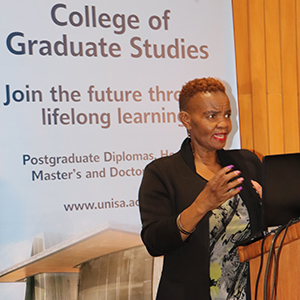 Mgutshini presented an Online Accelerated Postgraduate Support Programme to ensure excellent outcomes for the M&D students at Unisa. In addition to this programme, the college has numerous research support workshops to assist students during their postgraduate journey.