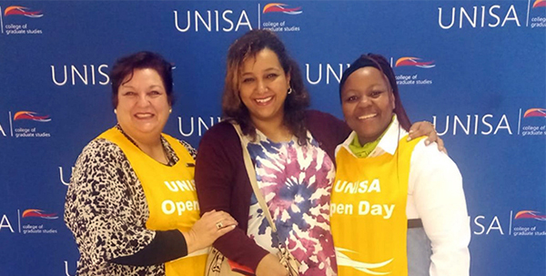Elena Swanepoel, Acting Deputy Director: Postgraduate Admissions, Unisa CGS; Bethelem Tesfu, prospective postgraduate student; and Penny Ngcobo, Acting Manager: Postgraduate Admissions, Unisa CGS