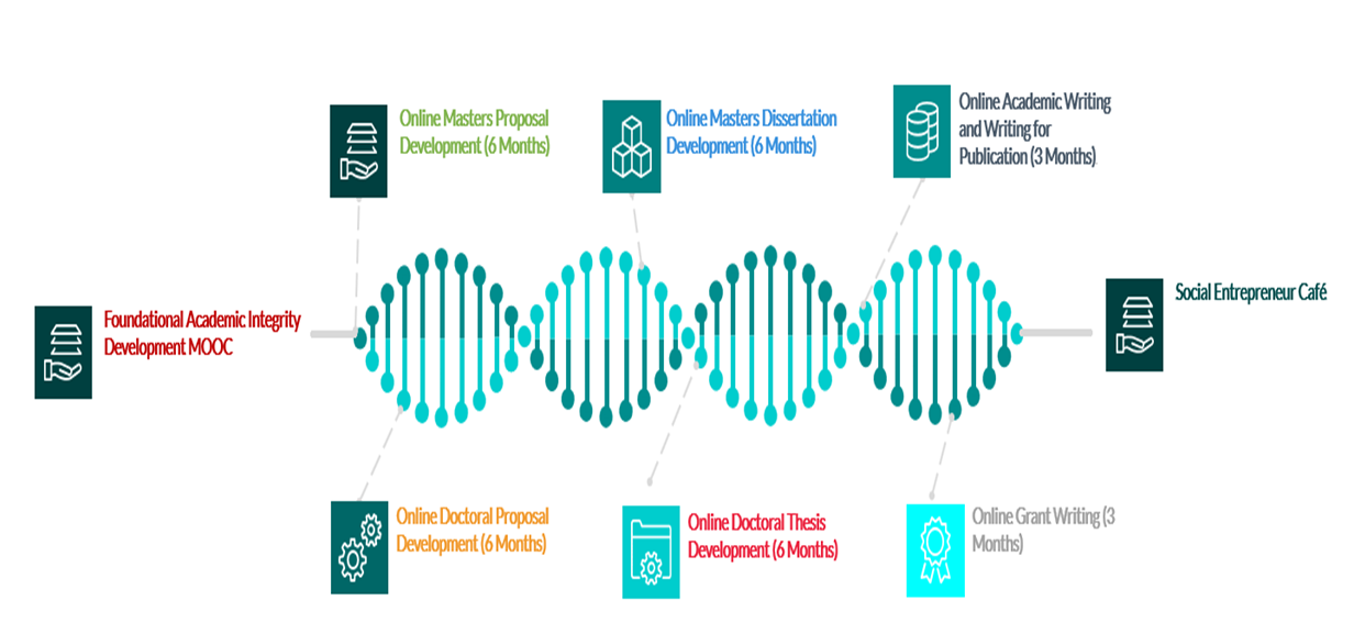 Apart from the registration form, we will also help you gauge your readiness and success paths through learner analytics tools. This will be sent to you, once you successfully register for the programme. There are six entry points into the programme. The first tier of support is dependent on the student’s level of study. The second tier is open to all postgraduate students. The programme has a rolling support schedule, which means that the support interventions offered in these tiers run concurrently. Students can be registered for more than one intervention at a time.