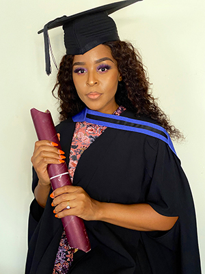 Due to cancelled graduation ceremonies as part of Unisa’s COVID-19 emergency measures, Sonke Nkwane, a Unisa BCom Industrial Psychology graduate from the College of Economic and Management Sciences, was inspired to organise her own "home graduation moment" to commemorate an academic accomplishment even without the formal occasion that all students relish.