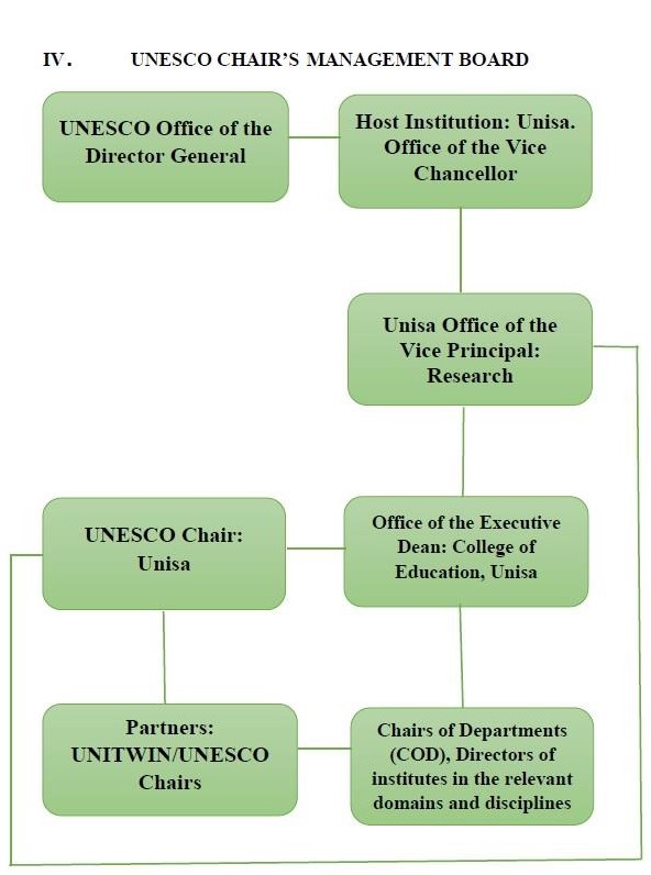The organogram below captures the structure of the joint management committee of the UNESCO/Unisa Chair in Open and Distance Learning (ODL), which shall be located on the Unisa Muckleneuk Campus in Muckleneuk, Pretoria.