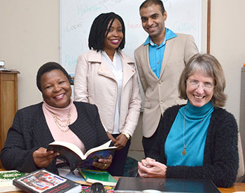 This is a team that believes wholeheartedly in raising awareness around gender issues and making as much progress as possible through their research and teaching. Pictured standing: Nomcebo Mwamusi and Dr Amritesh Singh and seated: Dr Sinenhlanhla Chisale and Prof Deirdre Byrne. |