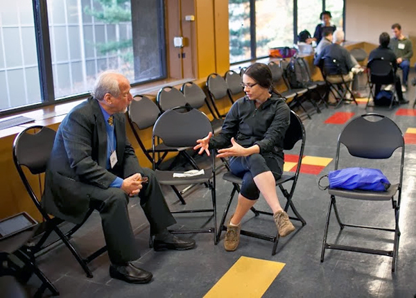 Prof Monika dos Santos (Department of Psychology, CHS, Unisa) (right) is the conceptualiser and leader of the Climate change adaptation: Community healthcare and systems strengthening project in Kruger to Canyons Biosphere. Here she is pictured chatting to a colleague at the Massachusetts Institute of Technology, USA, in December 2013, when she presented the concept for the first time.