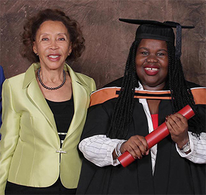 South African First Lady Dr Tshepo Motsepe and Unisa BA Honours in Psychology graduate Livhuwani Maphorogo