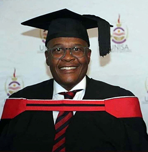 Unisa alumnus, Dr Brian Molefe, is not new to the institution’s alumni family. Molefe has been a Unisa student since 1986 and recently obtained an LLB degree at the institution. His father, Prof Sopeng Prince Molefe, was an academic and obtained two of his postgraduate qualifications at Unisa in 1975 and 1980. "I attended both of his graduation ceremonies and was inspired to choose Unisa as a suitable institution to pursue my studies," says Molefe.