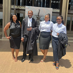 From left: Mahlodi Mothapo, Facilitator for the Tshwane Moot Court participants; Tshwane Moot Court participants: Prince Mphuthi, Michelle Zororo and Bheki Boyce |