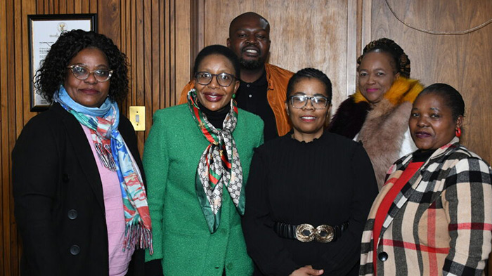 From left: Ms Matlhodi Seripe, Ms Rirhandzu Maswime, Mr Risenga Masingi, Prof Puleng LenkaBula, Dr Phumzile Dlamini and Ms Azwifarwi Mavhungu
