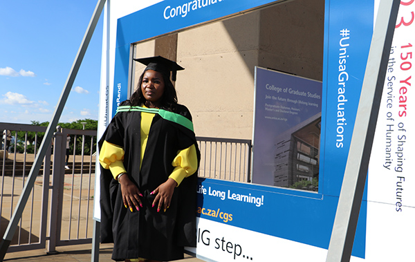 Khomotso Kgofelo, Bachelor of Accounting Sciences, Financial Accounting: The journey was not easy, but I am glad I did it and will continue pursuing another qualification. Regarding Unisa’s 150th anniversary, I would like to see the institution giving more to the black child.