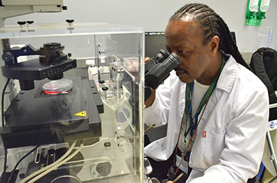 Ntwasa investigated strategies for the protection of normal cells undergoing chemotherapy since this treatment cannot discriminate well between cancer and normal cells. Hence, chemotherapy is  a harsh treatment, causing patients to suffer from many side-effects such as damage to their reproductive system, loss of hair, or damage to the digestive system, e.g. diarrhoea.