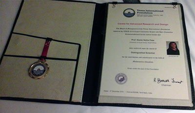 Feza, who is head of Unisa’s Institute for Science and Technology Education (ISTE) at the College of Graduate Studies, has received the Distinguished Scientist award in Mathematics Education. The ceremony was hosted by the Venus International Foundation, Centre for Advanced Research and Design, in India on 3 December 2016.