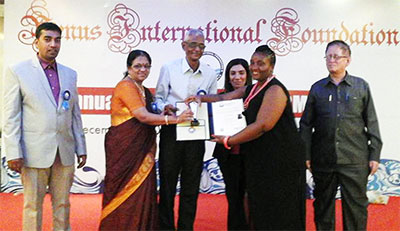 Prof. Nellie Feza (Head: ISTE) (second from right) receiving the Distinguished Scientist award at the Venus International Foundation, India