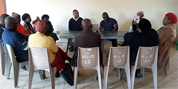 Macdonald Rammala (IDRA) engaging with an elder in Makapanstad