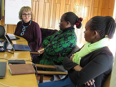 Dr Retha Visagie engaging on Research Integrity matters with Prof Eunice Kamaara and Jepchirchir Kiplagat of the Moi University