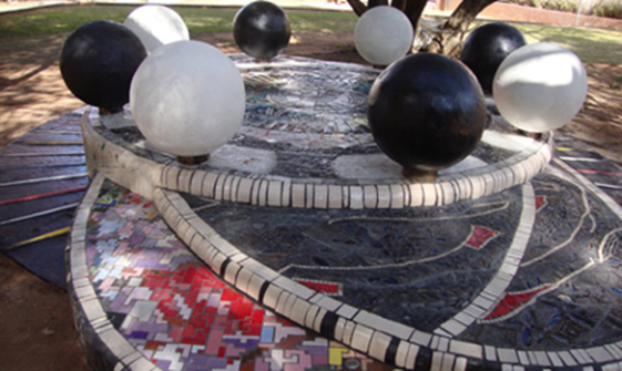 Jaco Spies, in collaboration with Dina Grobler and the Tshiamo Arts and Crafts Project, Philosophers’ Circle. UFS campus. |