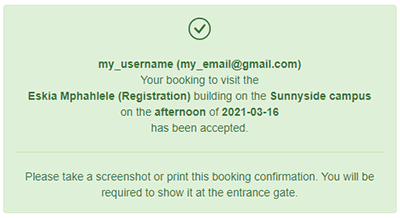 If you need to access any Unisa office, you are required to make a booking in advance. NO student will be allowed access to any campus without a booking a space or completing the Health Check App.