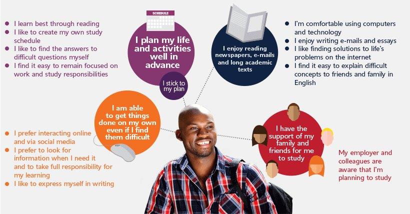 Many of us don't know what it's really like to study through distance learning, because most of our schooling and post-school education was completed through contact or face-to-face learning. This tool has been designed to help you get started at Unisa. It consists of a series of questions in different formats (multiple choice, match the column and open-ended questions) followed by video feedback that is both informative and encouraging.