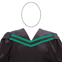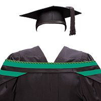 MTech (EDU) Black, edged with 2 x 20mm pantone (green) ribbons and lined with college colour satin bordered with a green cord |