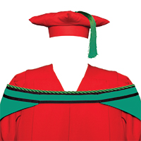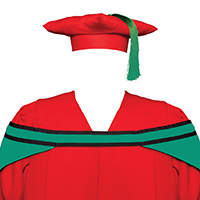 PhD (EDU) Pantone (green), edged with 2 x 20mm black ribbons and lined with college colour satin |