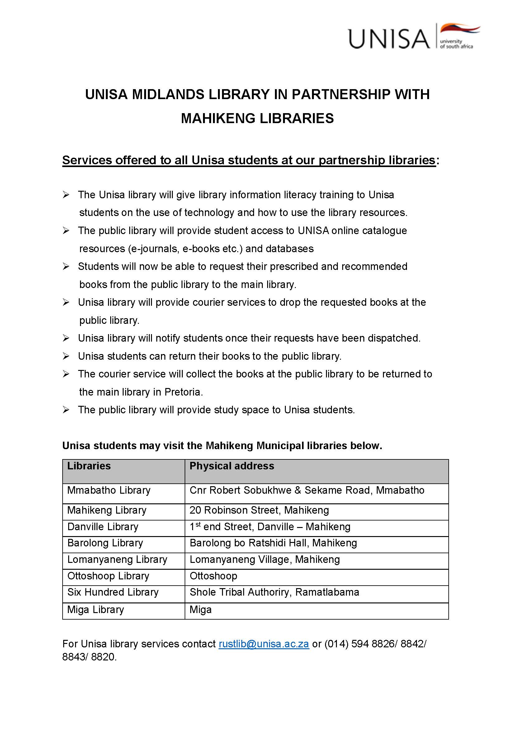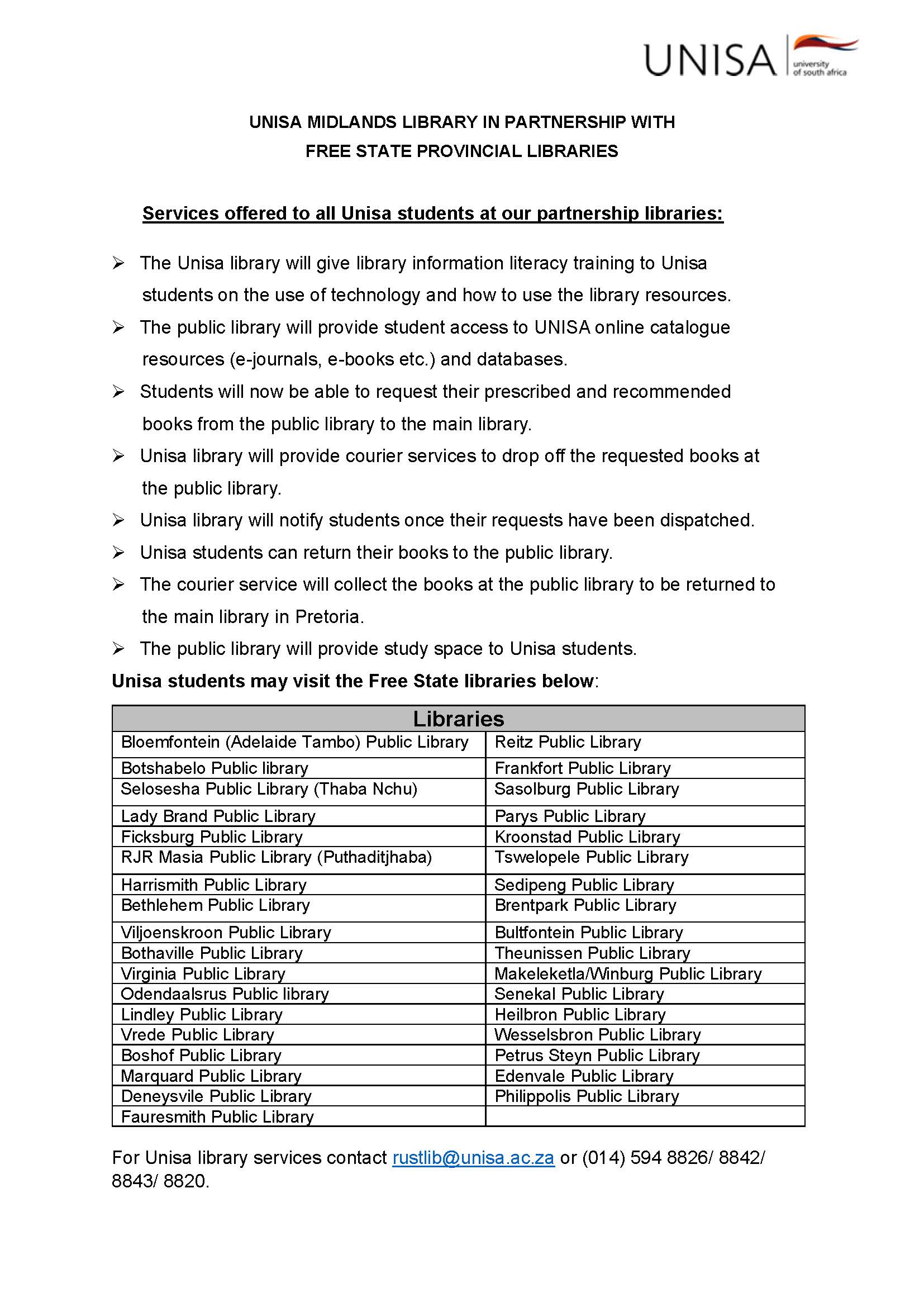 The Midlands Region provides a variety of student administration and academic support services to about 30 000 students, through various regional service centres (RSCs) in the North West, Free State and Northern Cape provinces.