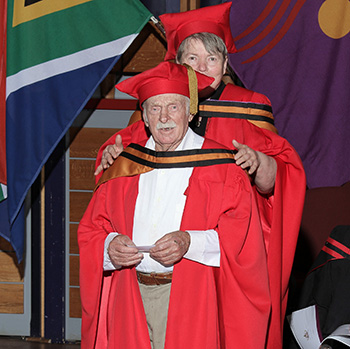 Conradie may have stood out between his counterparts on the stage on Friday as he accepted his doctoral degree in literature and philosophy in the College of Human Sciences, but he has two things very few possess - perseverance and the wisdom of Solomon.