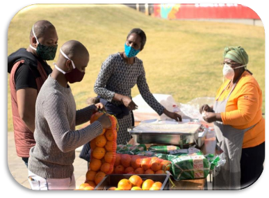 The main distribution took place at Loftus Park on 18 July 2020, with an additional collection point being established in Tembisa. The distribution was designed in a way which respected Disaster Management Act Regulations, in other words, social and physical distancing was maintained, students’ temperature was checked and they were sanitised before collecting food parcels. Additionally, considering that it was a cold day, warm soup and bread was prepared for them at the collection point so that they can eat or collect and eat at home. Volunteers assisted with food preparation.