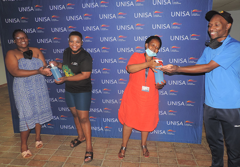 The Unisa KwaZulu-Natal (KZN) regional student representative council (SRC) on 6 November 2020 received personal protective equipment (PPE) from the student development office. With about 70 000 registered students in the region, it is expected that when the campuses are opened to students, there could be a surge in the number of students visiting the SRC offices, making it necessary for SRC members to practice safety and take precautionary measures against Covid-19 when engaging with students.