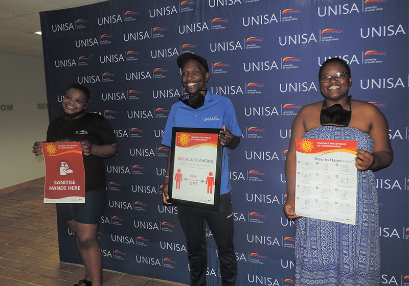 The equipment handed over to the student leadership included colourful posters with information about Covid-19, as well as masks and sanitiser for the SRC office. Ntombela said, as the SRC, they were grateful that they were part of a caring university and that they were going to ensure that the message about Covid-19 prevention reaches as many students as possible.