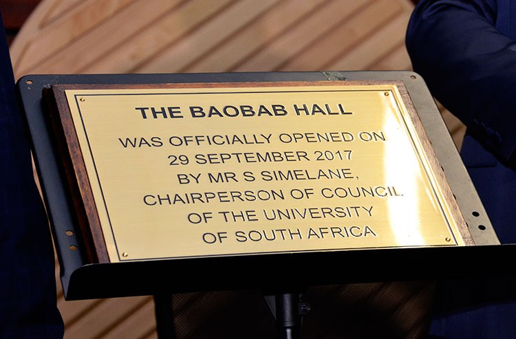 The building has been named the Clifford Tleane Student Support Centre, after a hard-working and selfless student leader from the Limpopo Region, the late Clifford Tleane, who fought tirelessly for better facilities for Unisa students in the region. The main hall, on the other hand, was named the baobab, after the tree mostly found in Limpopo and known for its capacity to store large volumes of water in its trunk, making it a key water resource during dry seasons. The Baobab can also be used for multiple purposes such as shelter, food and medicine, amongst others.