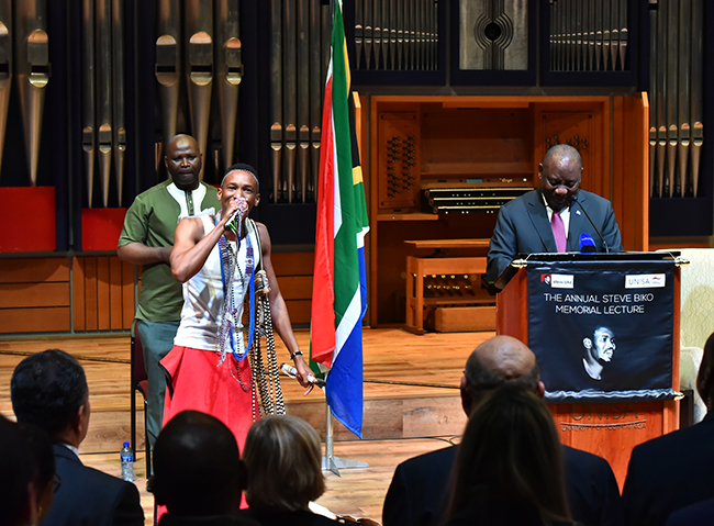 Delivering the keynote address at the 19th Annual Steve Biko Memorial Lecture, His Excellency Cyril Ramaphosa, President of the Republic of South Africa, enjoined citizens to join him in creating a society defined by solidarity, rather than competition. ‘We must build a society that is defined by compassion, selflessness and generosity,’ he said. The flagship memorial lecture is co-presented by the Steve Biko Foundation and Unisa annually, and this year coincided with the university’s celebration of 145 years as a beacon of hope to many.