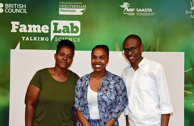 The three Unisa FameLab finalists: Precious Sithole, Charmaine Tshangana, and Rapelang Patala