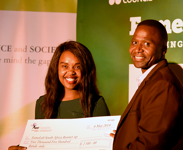 Having won the Unisa heat of the 2019 FameLab competition in March this year, she participated in the national FameLab finals in Durban and was runner-up. Although she did not win, she relished the opportunity to compete against the FameLab winners from 13 other higher education and science institutions around the country.