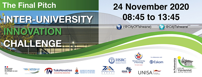 In addition to the City of Tshwane and the three universities, the partners who are teaming up to host the inaugural competition on 24 November are the Entrepreneurship Development in Higher Education (EDHE), Tuksnovation, Eskom, the French Embassy, Human Sciences Research Council (HSRC), The Innovation Hub and the Technology Innovation Agency (TIA).