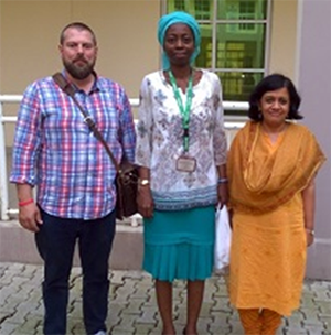 (From left) Prof. Ashley Gunter, Prof. Monioluwa Olaniyi and Prof. Parvati Raghuram on their project visit to the Open University of Nigeria