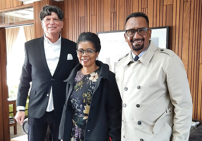 Prof. Billy Gundelfinger of Gundelfinger Attorneys, with Prof. Puleng LenkaBula, Unisa Principal and Vice-Chancellor, and the late Prof. Vinesh Basdeo, Executive Dean of the College of Law at Unisa