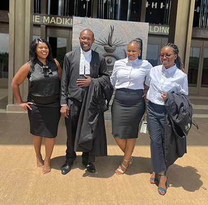 ![]() Left to right: Mahlodi Mothapo, Facilitator for the Tshwane Moot Court participants; Tshwane Moot Court participants: Prince Mphuthi, Michelle Zororo and Bheki Boyce |