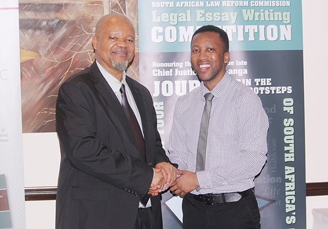 The South African Law Reform Commission (SALRC) in conjunction with prize sponsors Juta Law hosted the 2018 Annual Legal Essay Writing Competition Awards ceremony on Friday, 6 September 2019 at the Centurion Hotel in Pretoria. The 2018 edition of the competition was in honour of the legacy of the late Chief Justice Pius Langa. The SALRC Legal Essay Writing Competition encourages critical legal writing by Bachelor of Law (LLB) and Master of Law (LLM) students across all South African universities, while generating new ideas for law reform. These ideas should be aligned to South Africa’s priorities as a developmental state and be aimed at keeping the law abreast of developments in society and in tune with the needs of South Africa’s diverse population and national policy priorities.