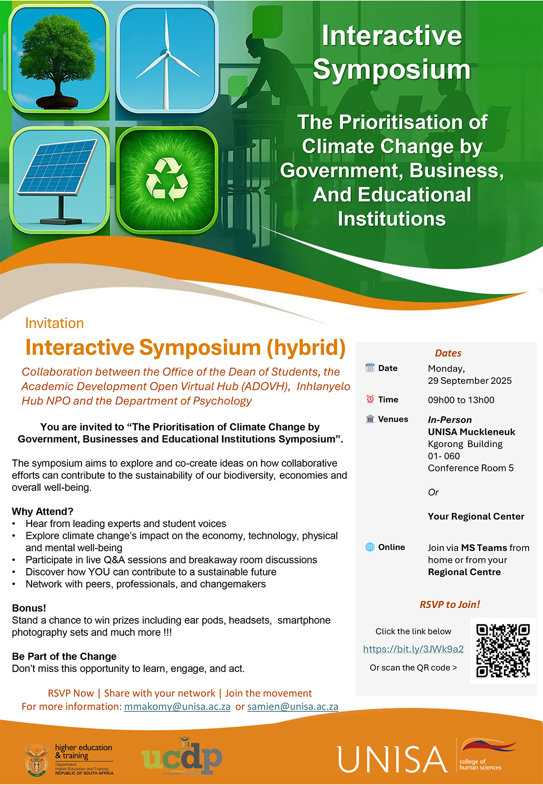 Interactive symposium (hybrid): 'The prioritisation of climate change by government, business and educational institutions'